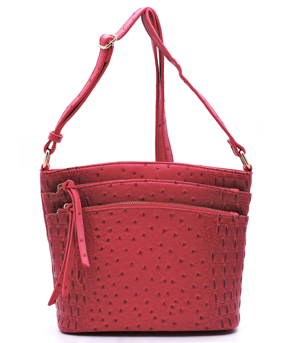 Ostrich Croc Multi Zip Pock...