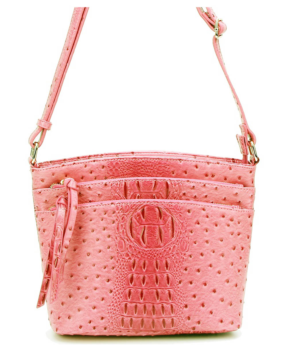 Ostrich Croc Multi Zip Pock...