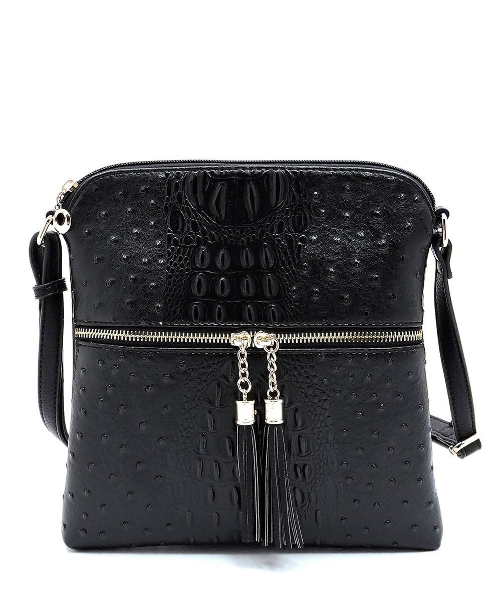 Ostrich Croc Zip Tassel Crossbody Bag OS062 BLACK