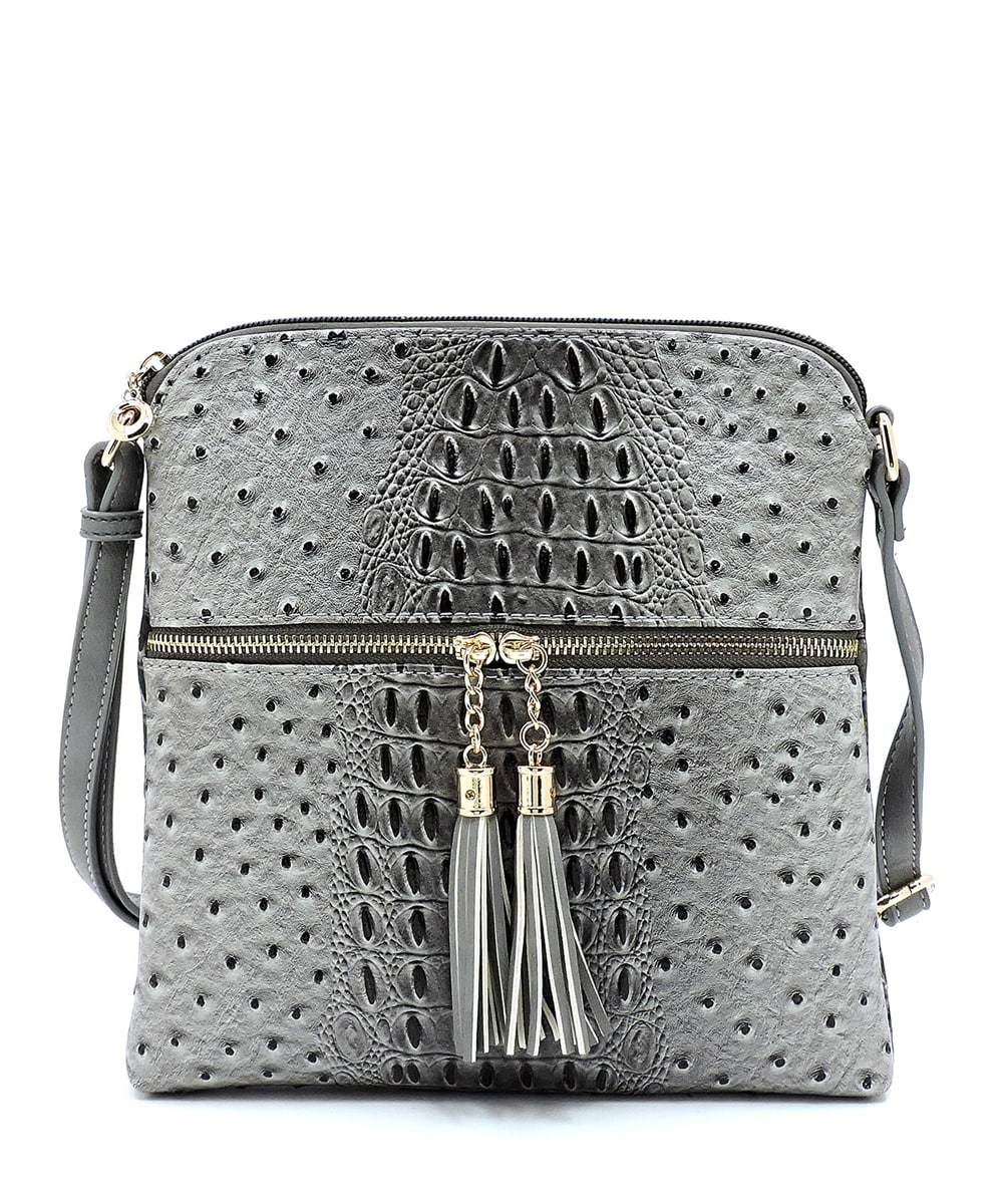 Ostrich Croc Zip Tassel Crossbody Bag OS062 GRAY
