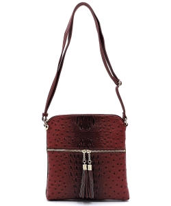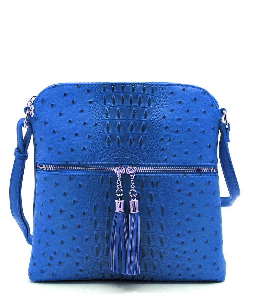 Ostrich Croc Zip Tassel Crossbody Bag OS062 PURPLE