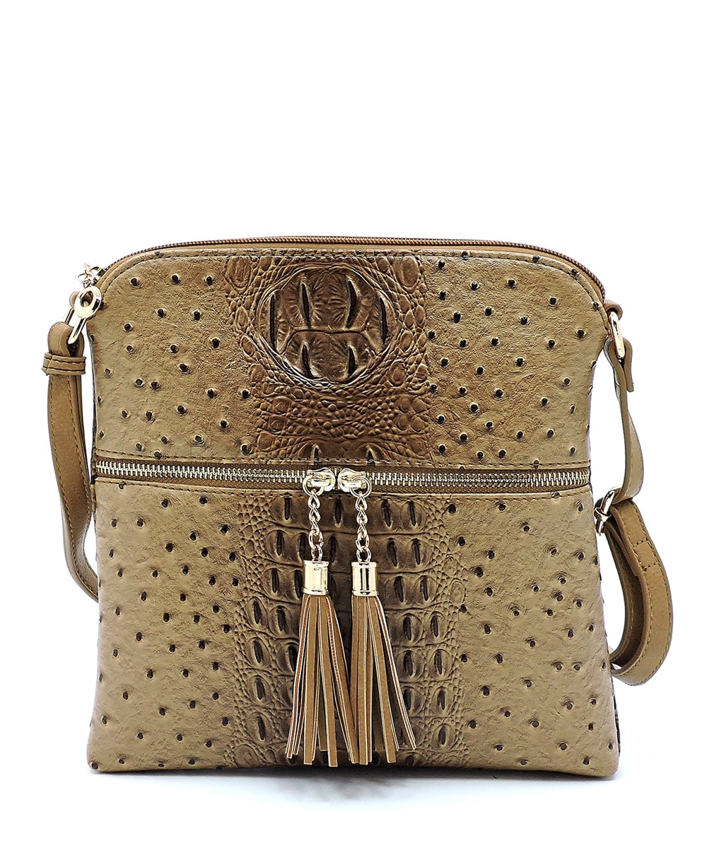 Ostrich Croc Zip Tassel Crossbody Bag OS062 GRAY