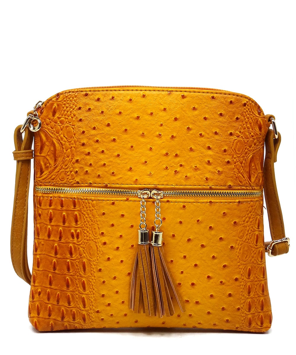 Ostrich Croc Zip Tassel Crossbody Bag OS062 TAN