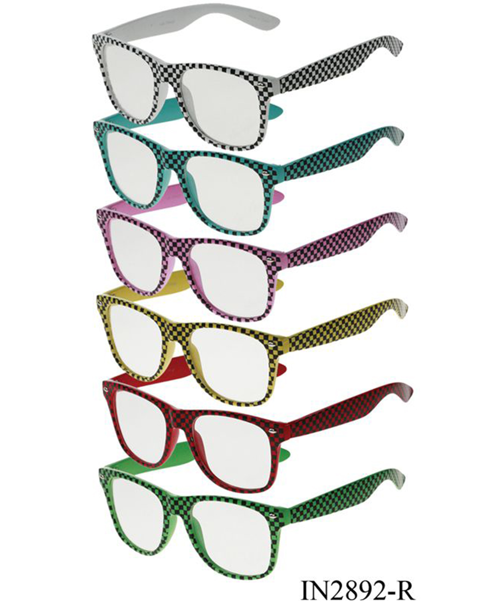Package of 12 Pieces Checkered Print Clear Sunglasses IN2892-R