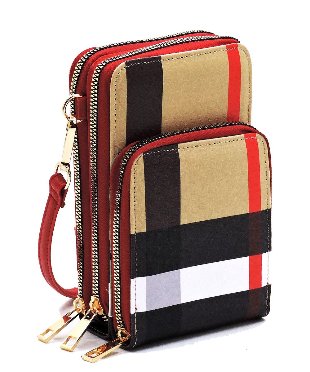 Plaid Check Cellphone Crossbody Bag BT081 RED