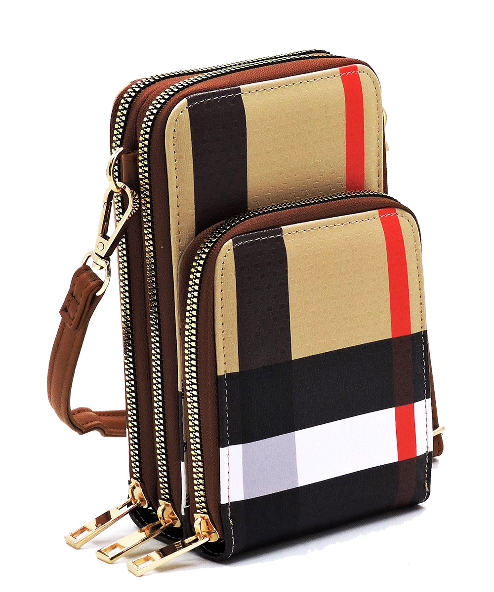 Plaid Check Cellphone Crossbody Bag BT081 TAN