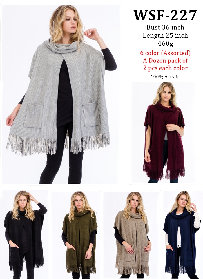 WSF-227 A Dozen pack of 2 pcs each color 6 colors Assorted 100% ACRYLIC Bust 36 Length 25 inch 460g