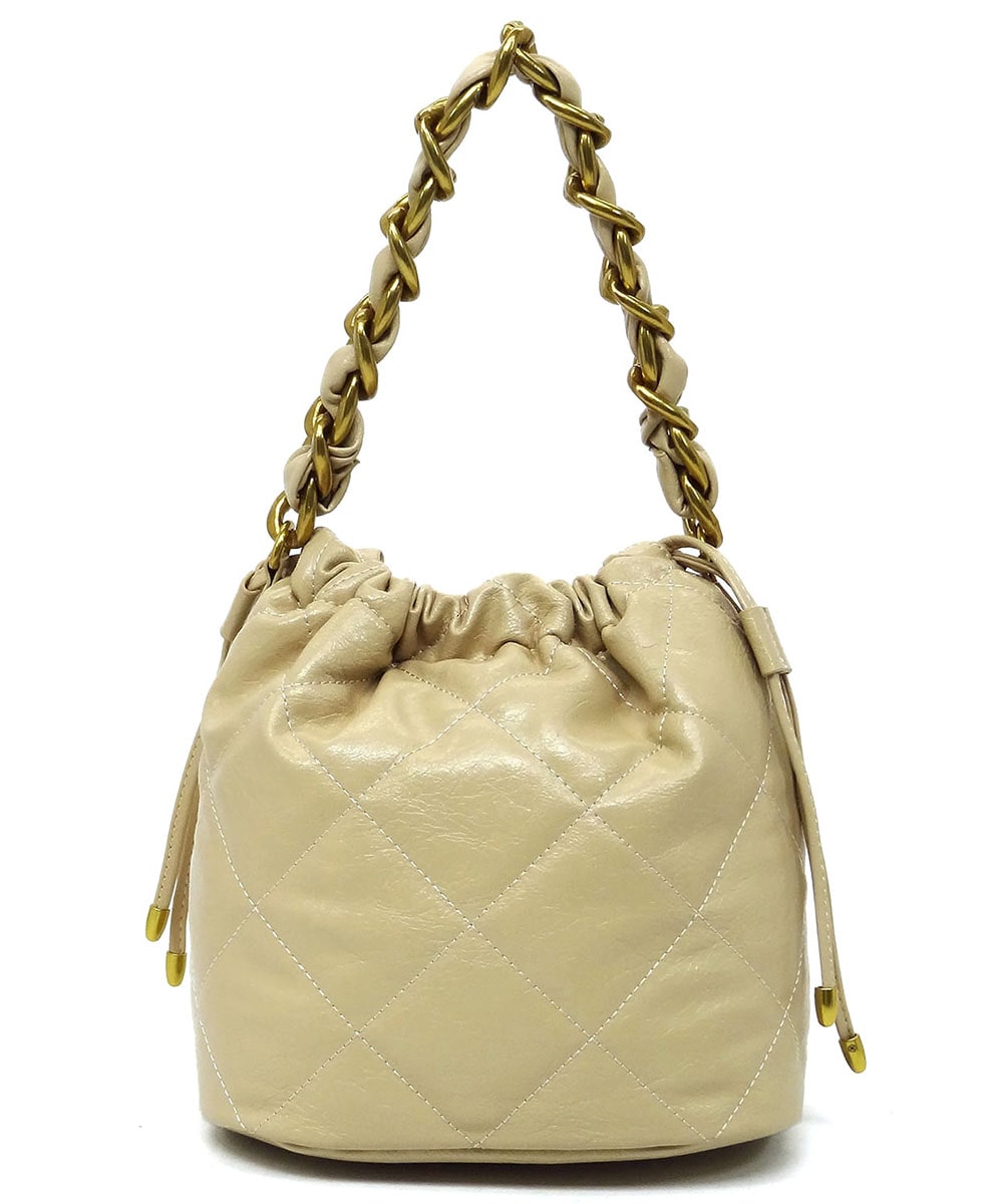 Quilted Chain Link Bucket Bag CJF114 STONE
