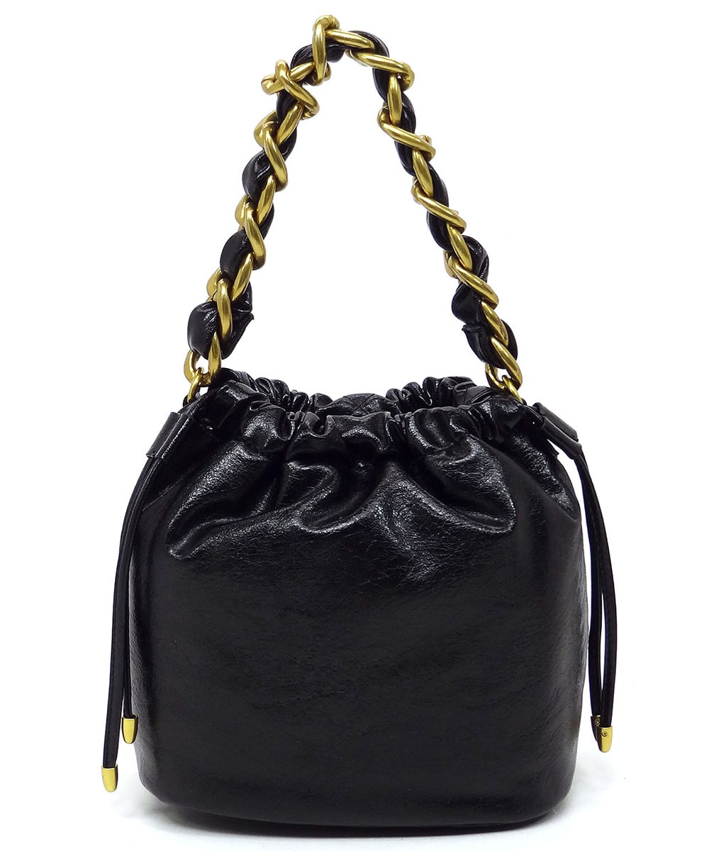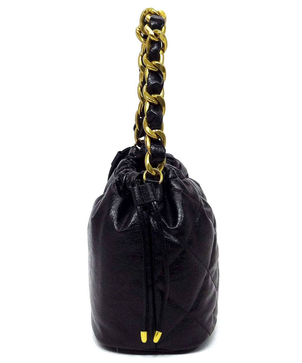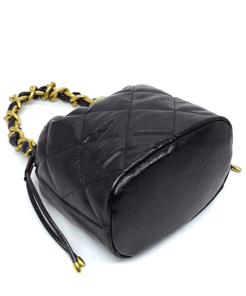 Quilted Chain Link Bucket Bag CJF114 BLACK