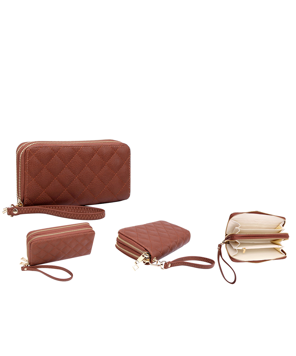 Double Zip Quilted Wallet QW0012 Brown