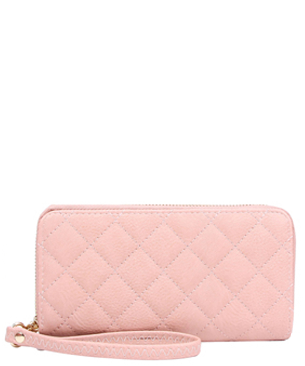 Double Zip Quilted Wallet QW0012 Pink