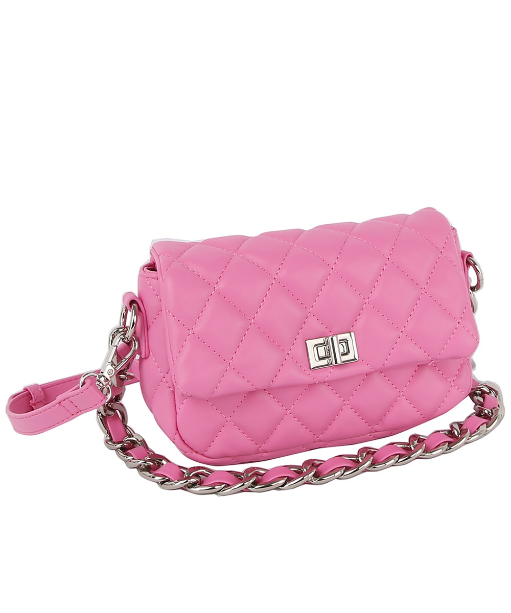 Quilted Flap Classic Shoulder Bag Faux vegan leather Turn-lock & Zip top closure Silver-tone hardware Detachable shoulder strap L 8 * H 5.25 * W 2.5 (10 D)