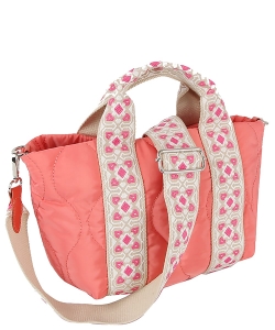 Quilted Nylon Top Handle Satchel LHU479 TAN