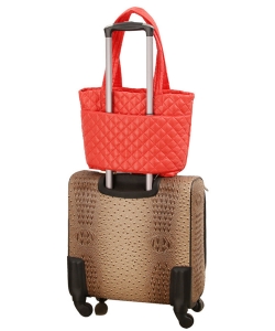 Quilted Puffy Tote Bag JYE-0503 LIGHT BROWN