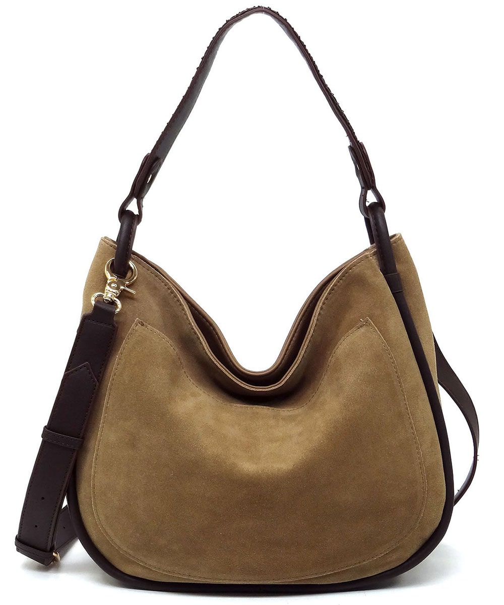 Real Suede Leather Hobo Shoulder Bag CJF119 TAUPE