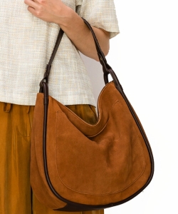 Real Suede Leather Hobo Shoulder Bag CJF119 BROWN