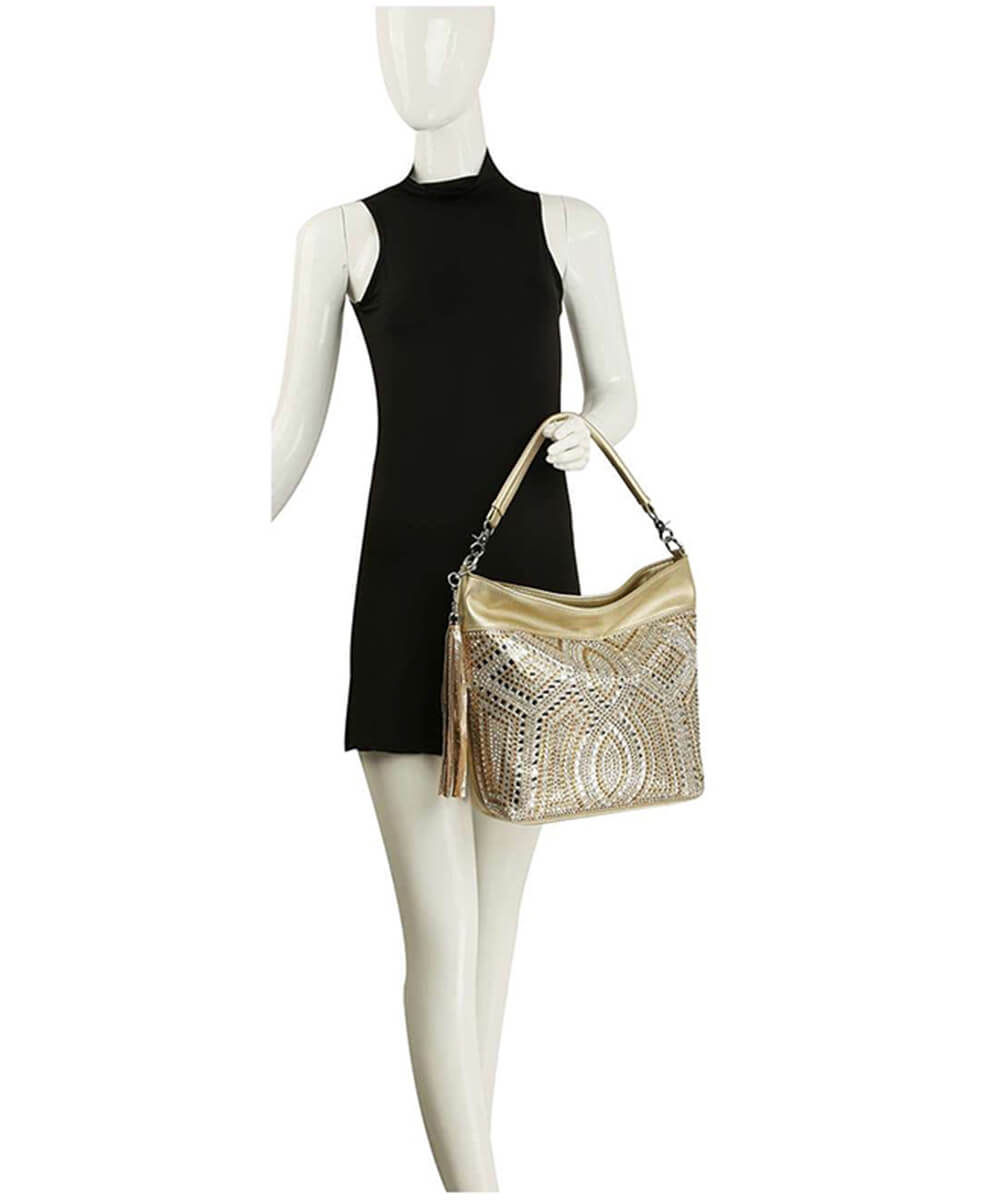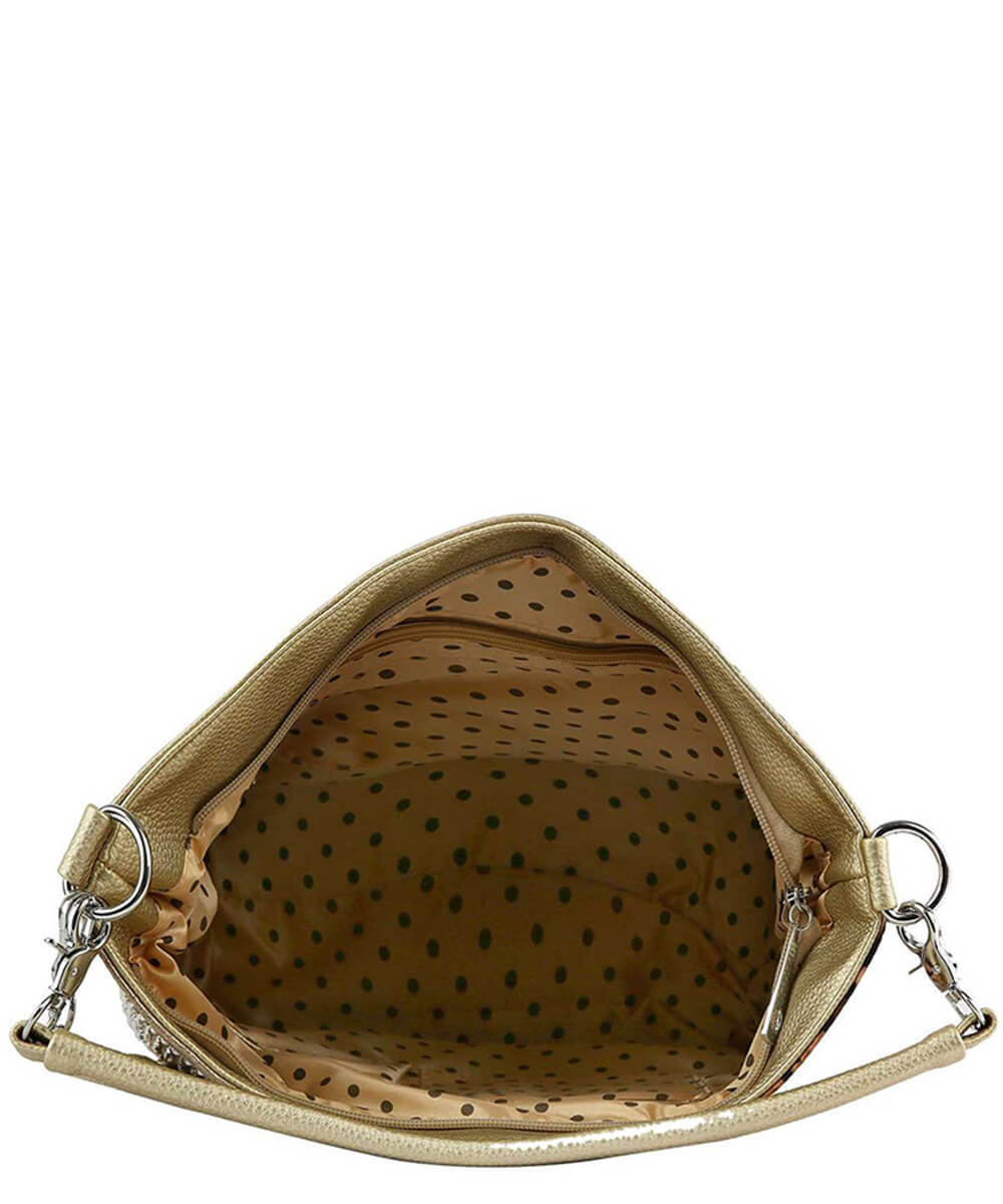 A beautifully unique stone pattern comes to life on the front of this beautifully styled hobo handbag.