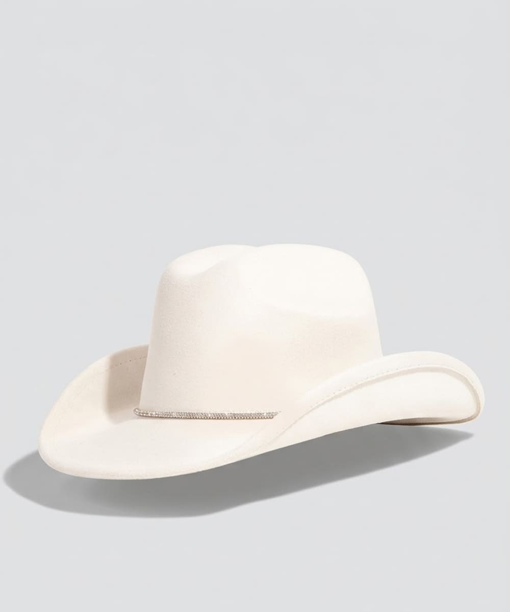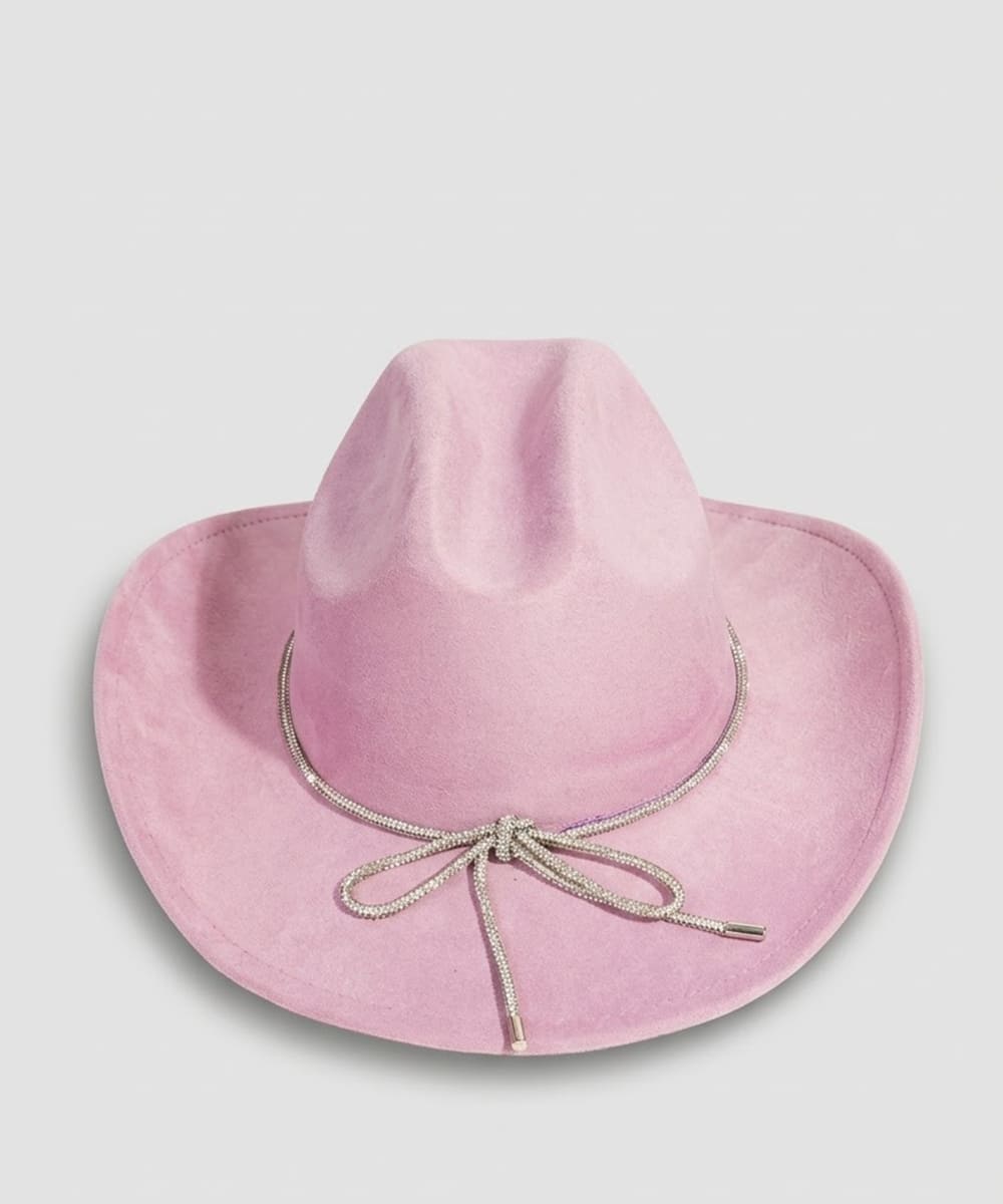 This piece is both timeless and on-trend, this cowboy hat shows off a distinctive rhinestone cord design. A versatile cowboy hat that's perfect for any occasion, adding a touch of elegance and style to any outfit. Available in BK, IV, PU and PK. This item is sold in packs of 1.