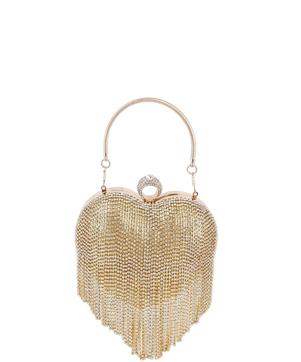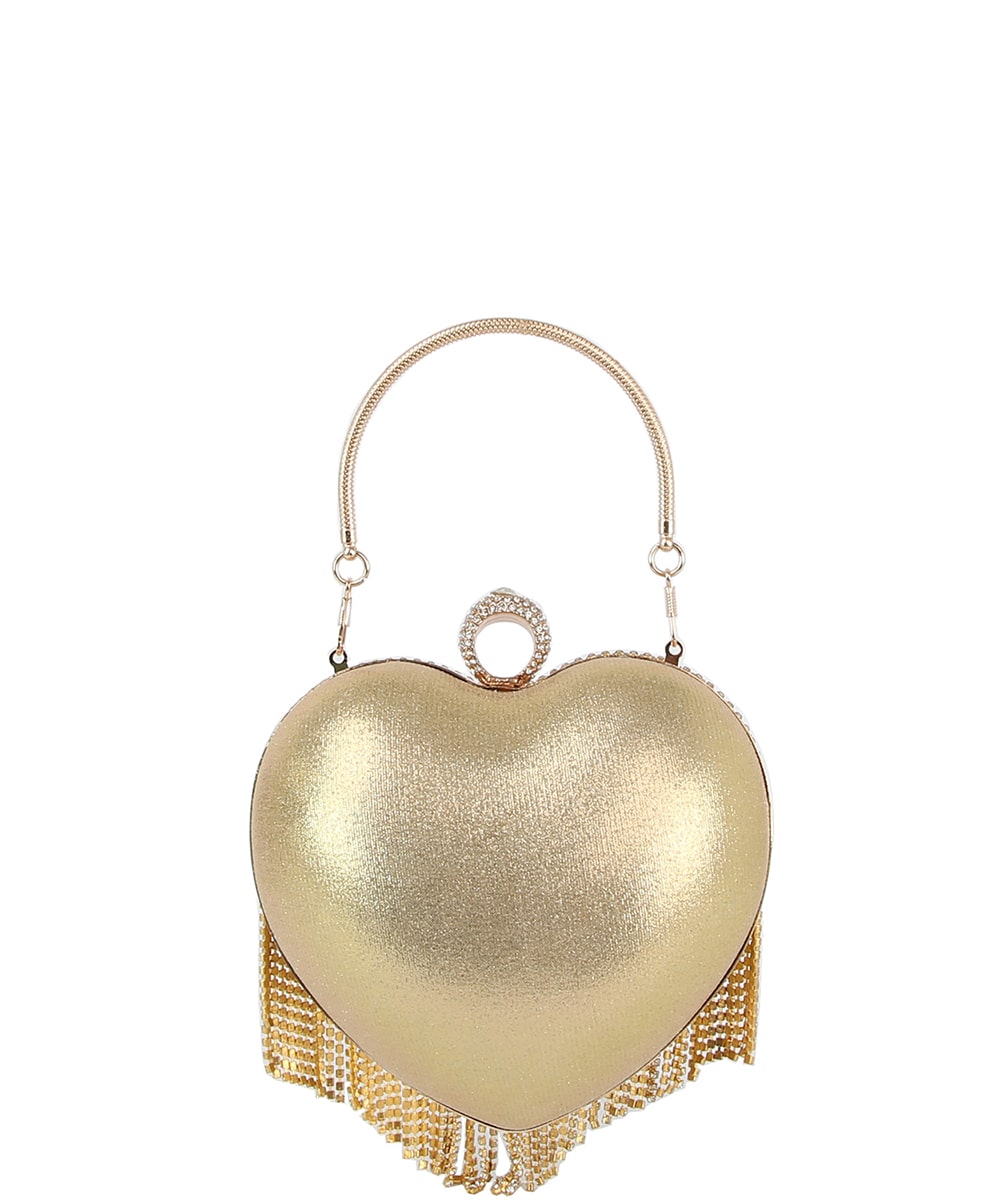 Rhinestone Heart Fringe Evening Bag LGZ072 BLACK