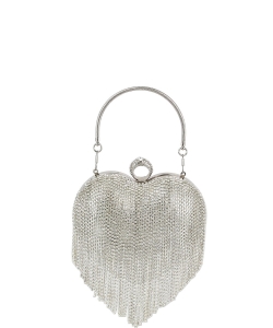 Rhinestone Heart Fringe Evening Bag LGZ072 BLACK