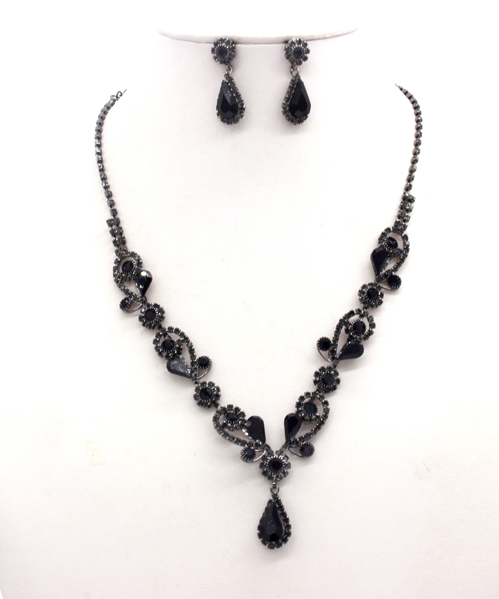 Rhinestone Necklace with Earrings NB300618 BNJT