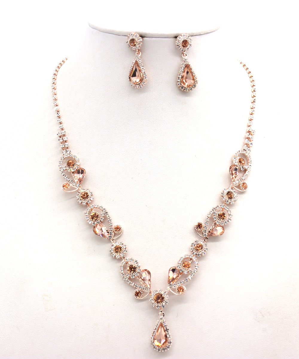 Rhinestone Necklace with Earrings NB300618 RGLP