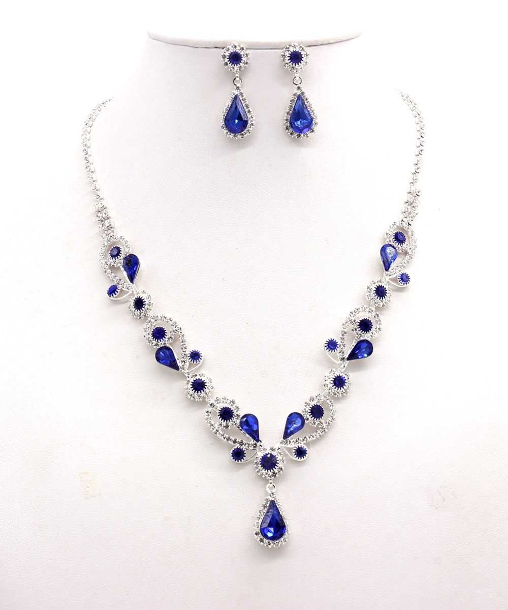 Rhinestone Necklace with Earrings NB300618 SVCB