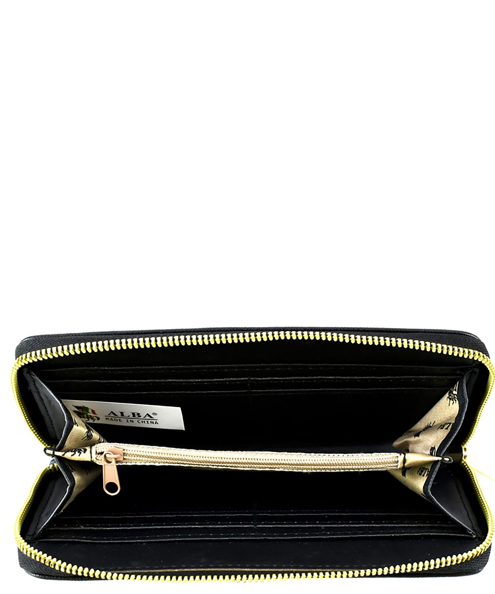 Saffiano Zip Around Wallet Wristlet SA020 BLACK