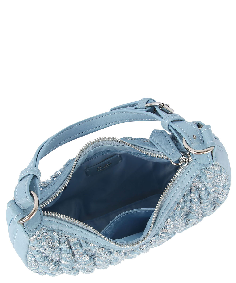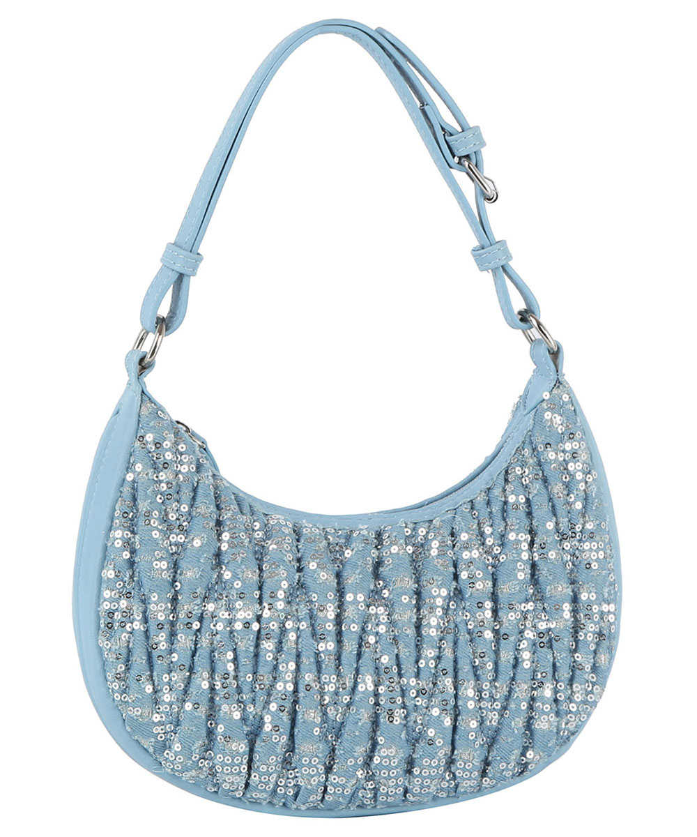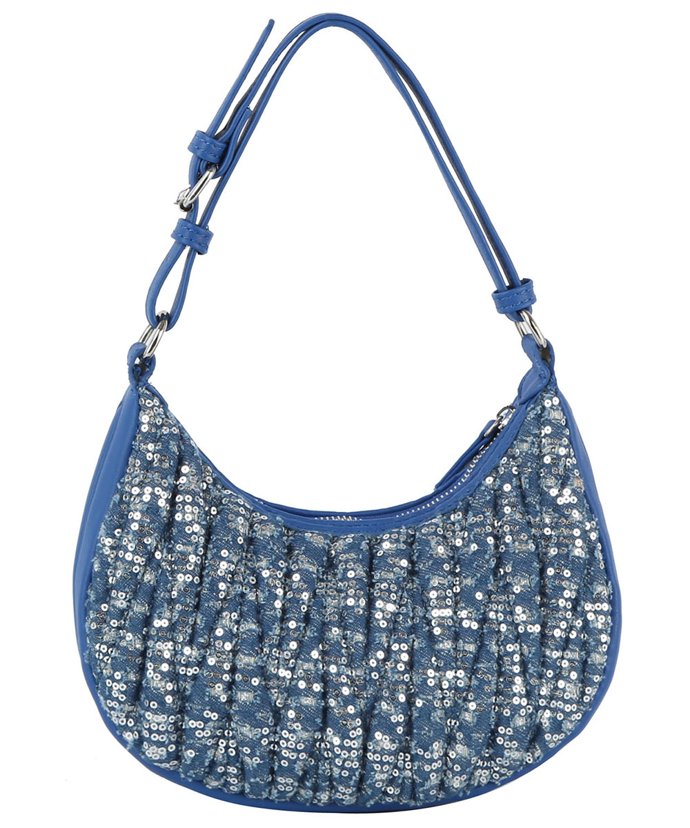 Sequined Denim Quilted Hobo...