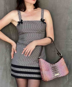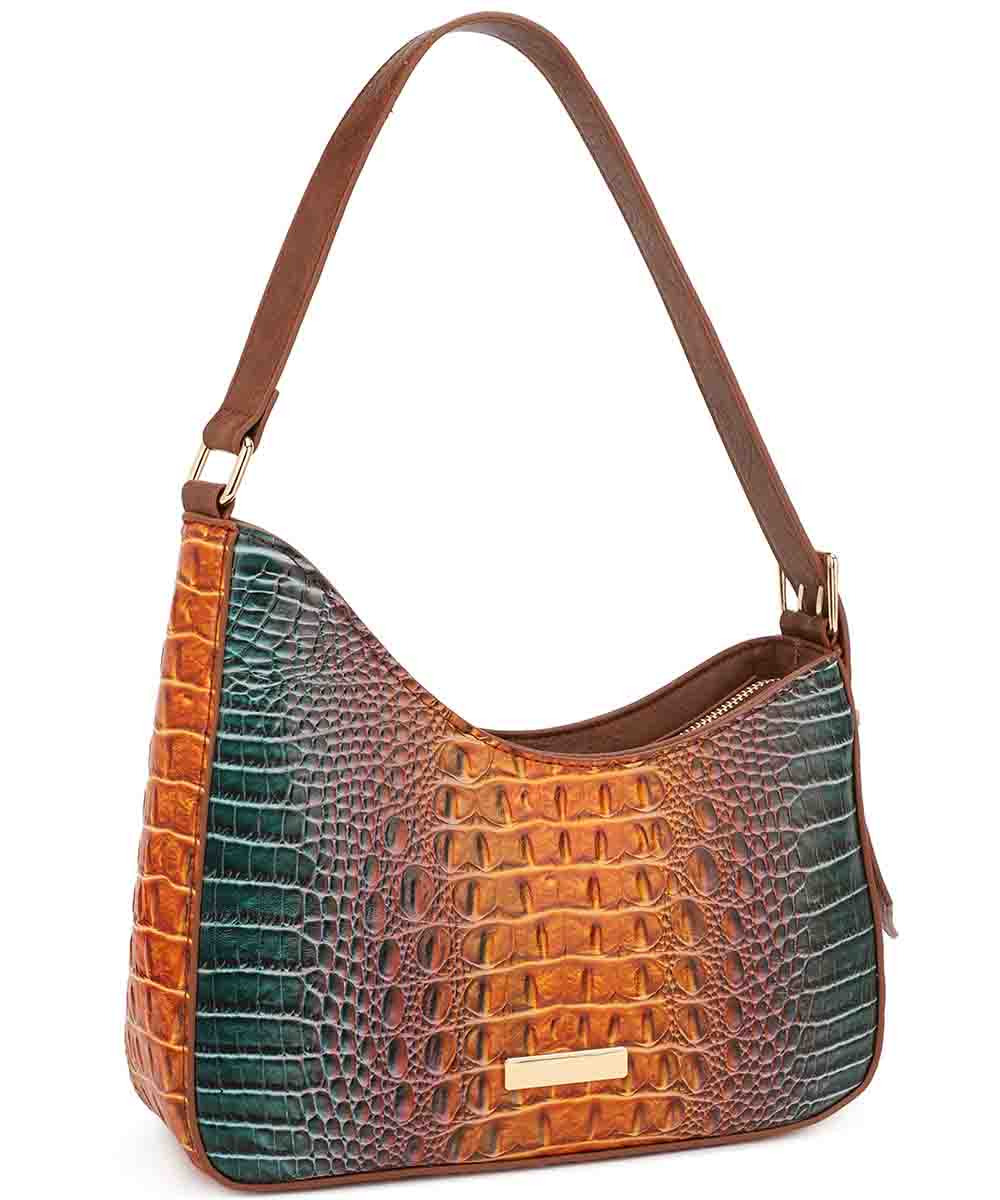 This SARAH AUPEN Shaped Croc Embossed Shoulder Bag is a stylish accessory that combines functionality with fashion.