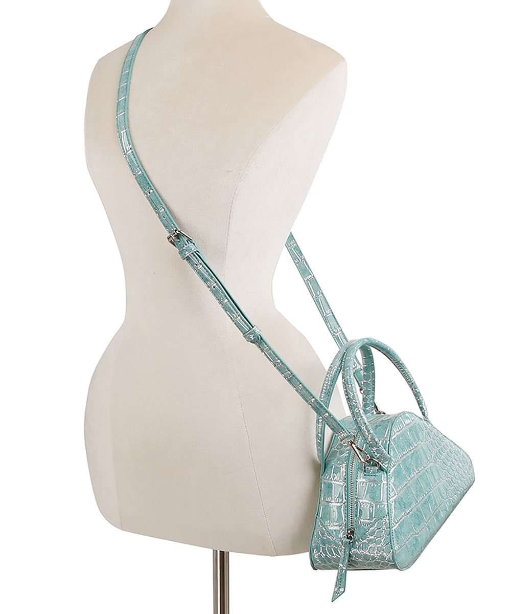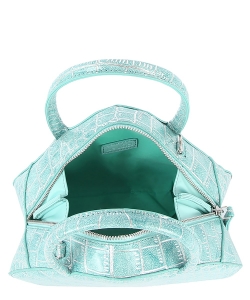 Silver Croc Triangle Satchel Bag LH120-Z TURQUIOSE