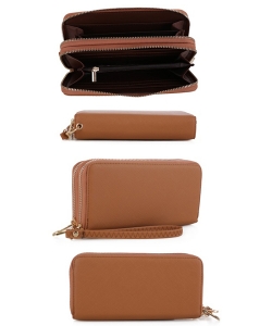 Plaid Check Zip Around Wallet Wristlet BT028 TAN