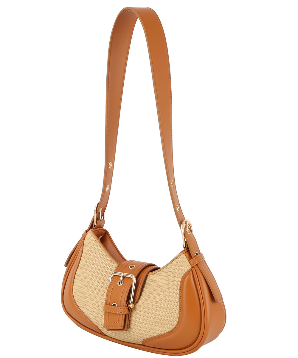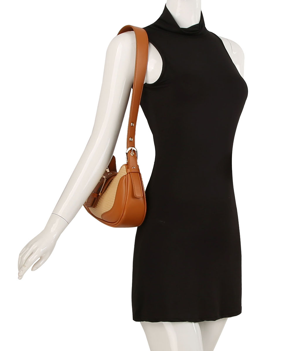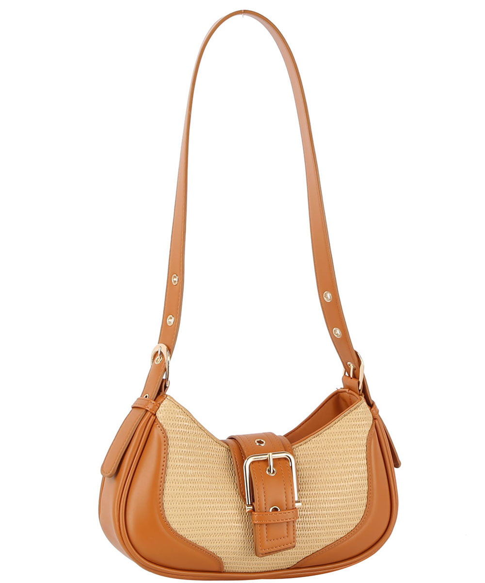 Straw Canvas Buckle Hobo Sh...