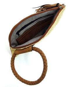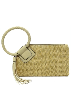 Straw Cuff Handle Tassel Wristlet Clutch ST204 TAN