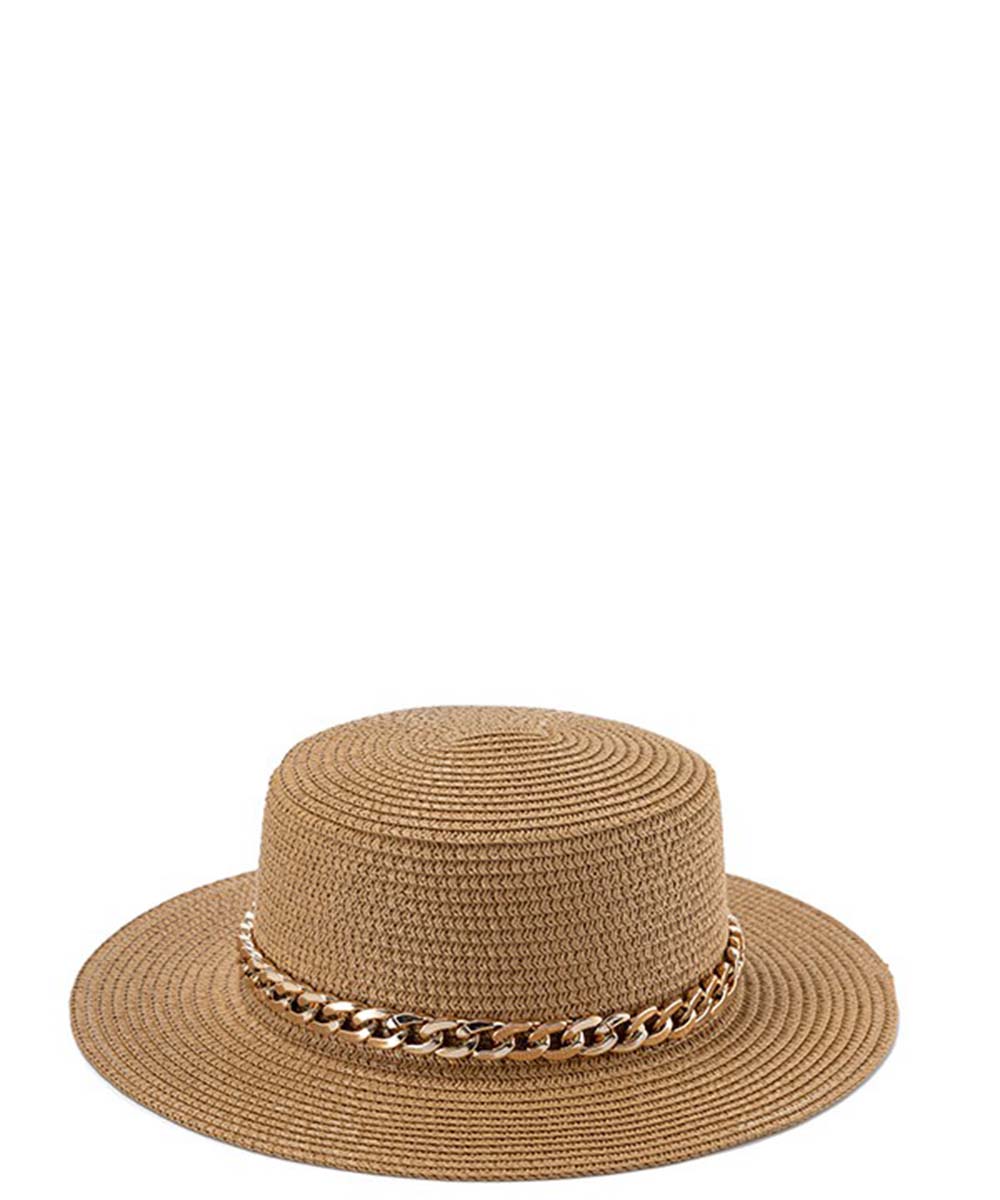 Straw SUmmer Hat with Chain HA320092 TAUPE