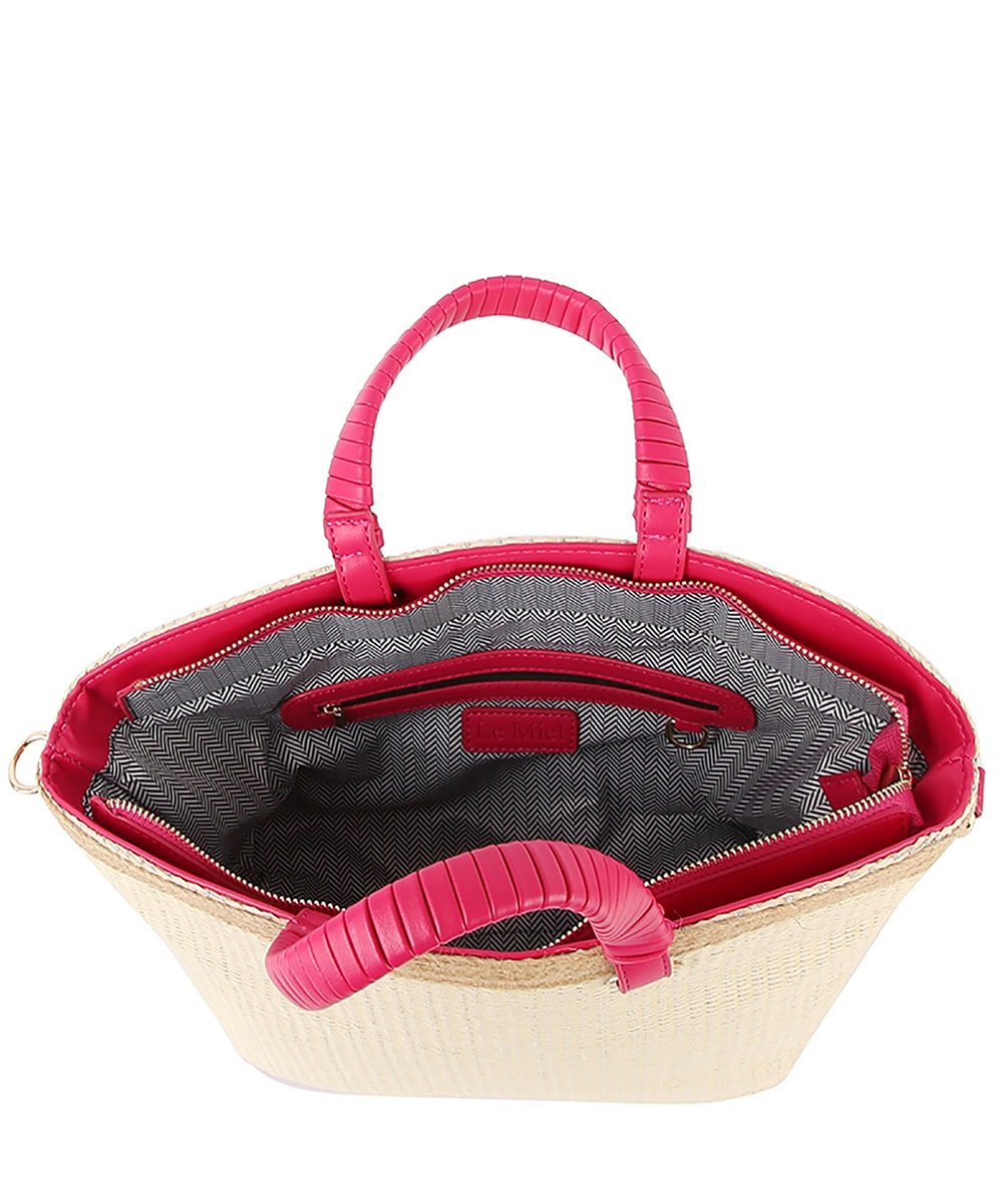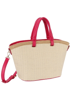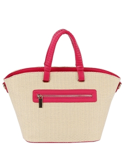 Straw Top Handle Tote Bag LQ335-Z FUCHSIA