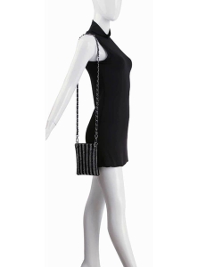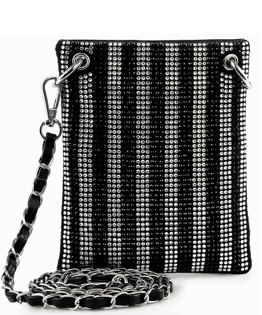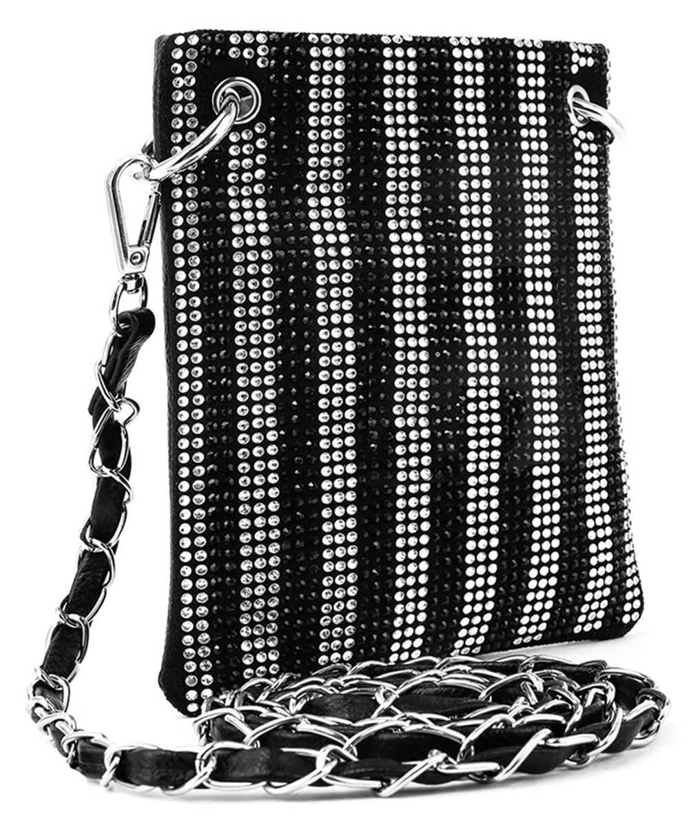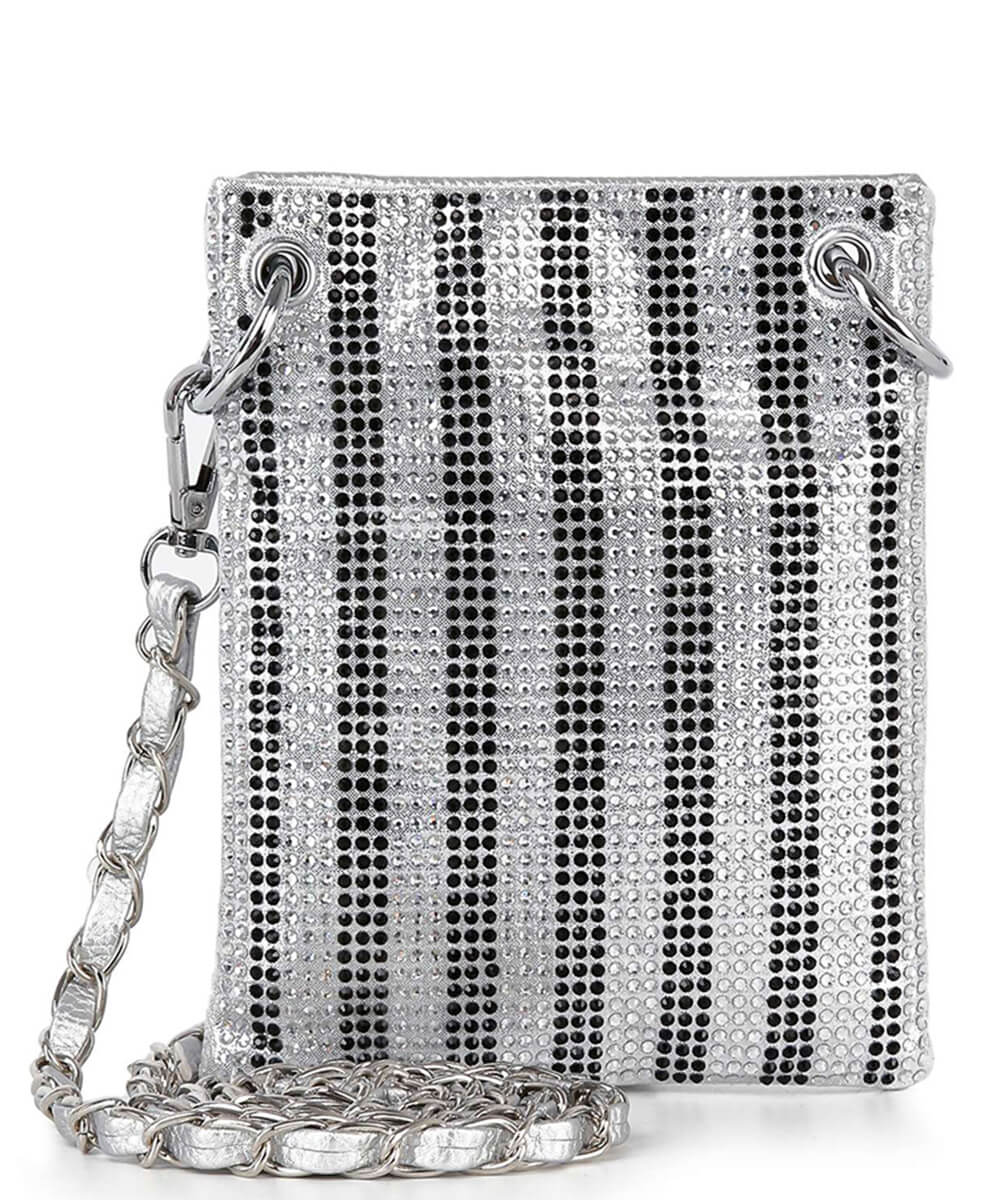 Stripes of rhinestones is a big design but do not let the little size fool you, this bag is full on fun!