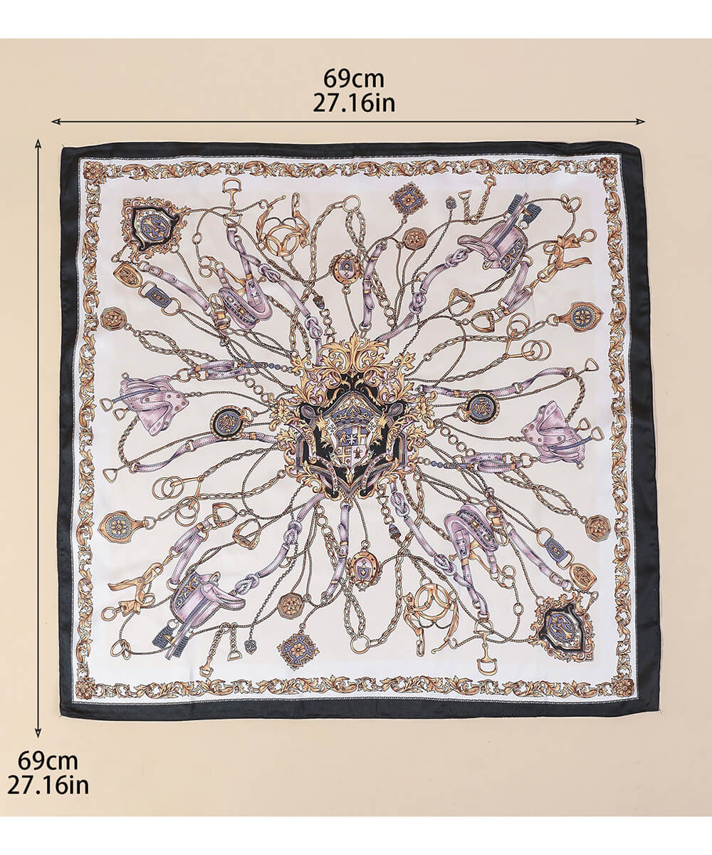 -Classic square shape for versatile styling: neck scarf, hair accessory, or bag detail
