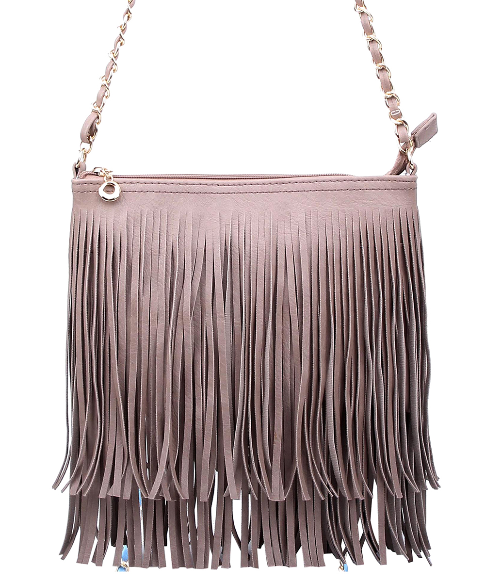 Fringed Shoulder Bag Tassel Cross Body E031 STONE