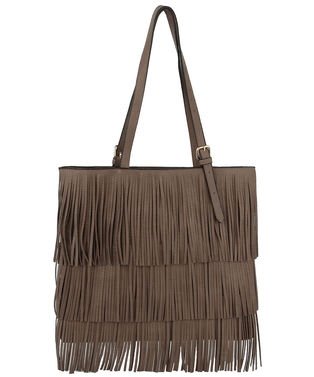 Western Fringe Shopper Flat Tote JY0390 TAUPE