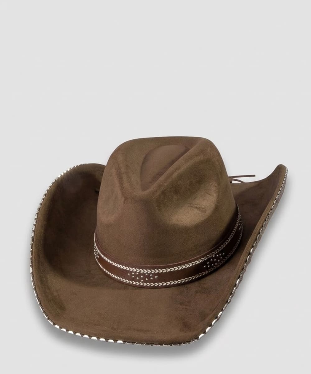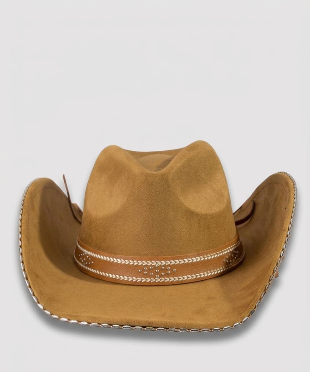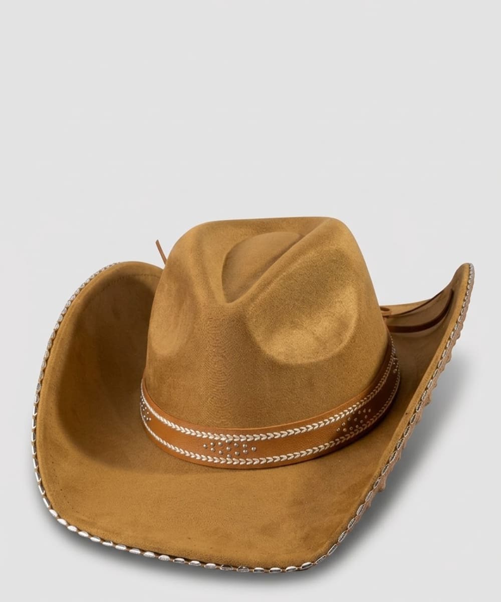 The perfect way to add some sparkle to your outfit, this cowboy hat carries a charming western studded trim design. The perfect cowboy hat for completing any outfit, whether you're dressing up or keeping it casual. This item is sold in packs of 12.