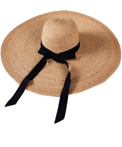 Wide Summer Straw Hat with Bow HA320014 LTAUPE