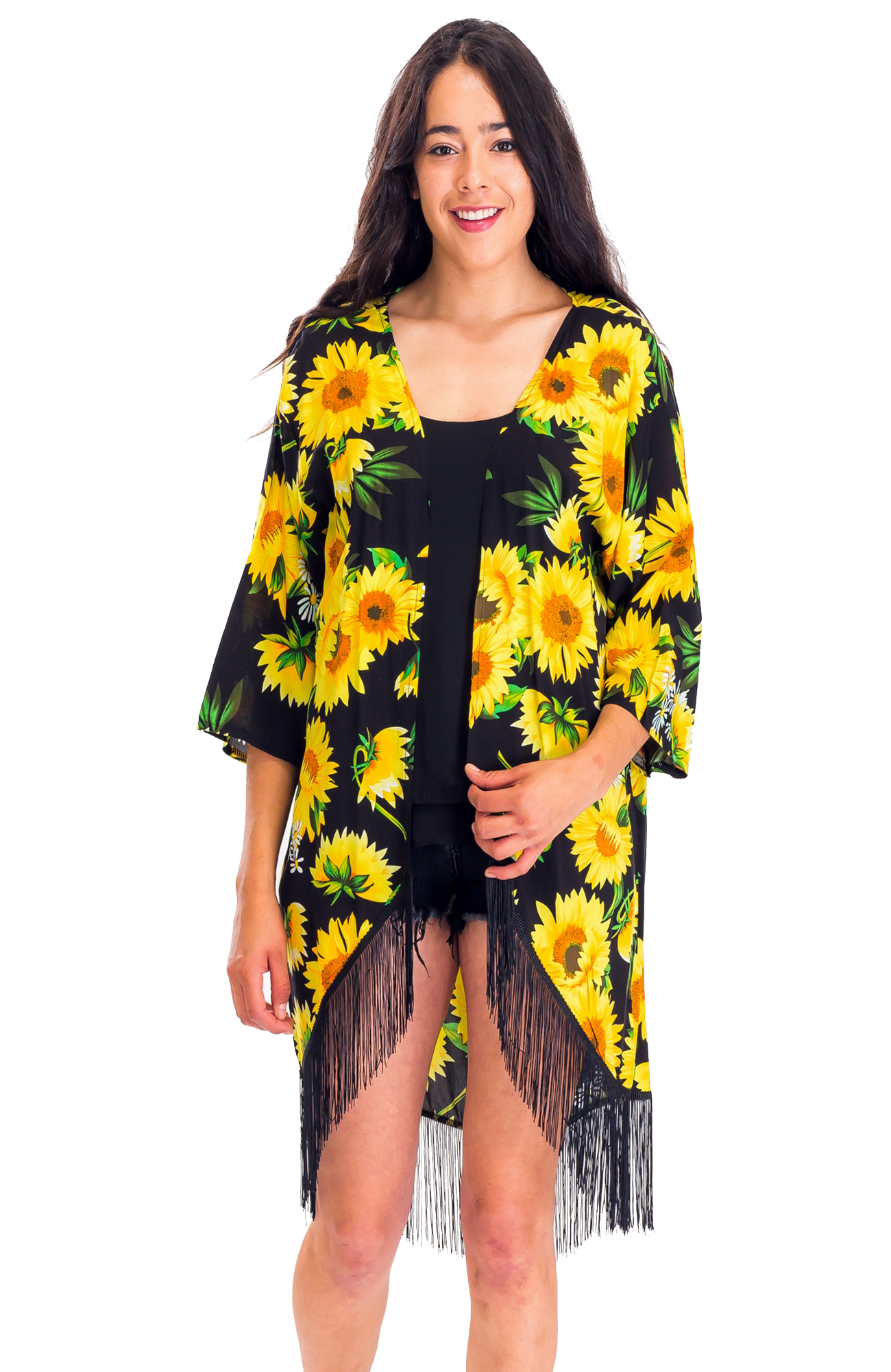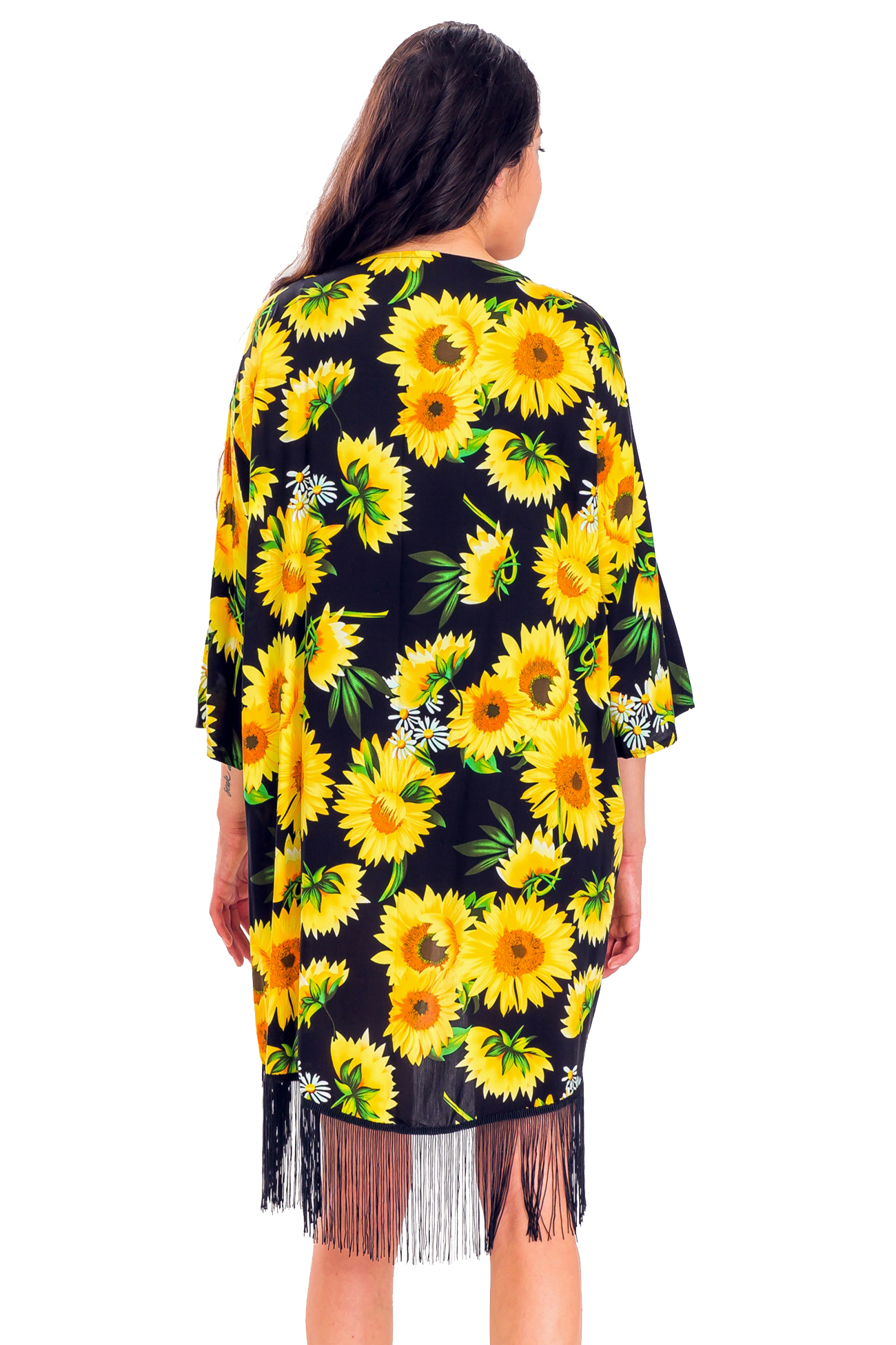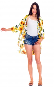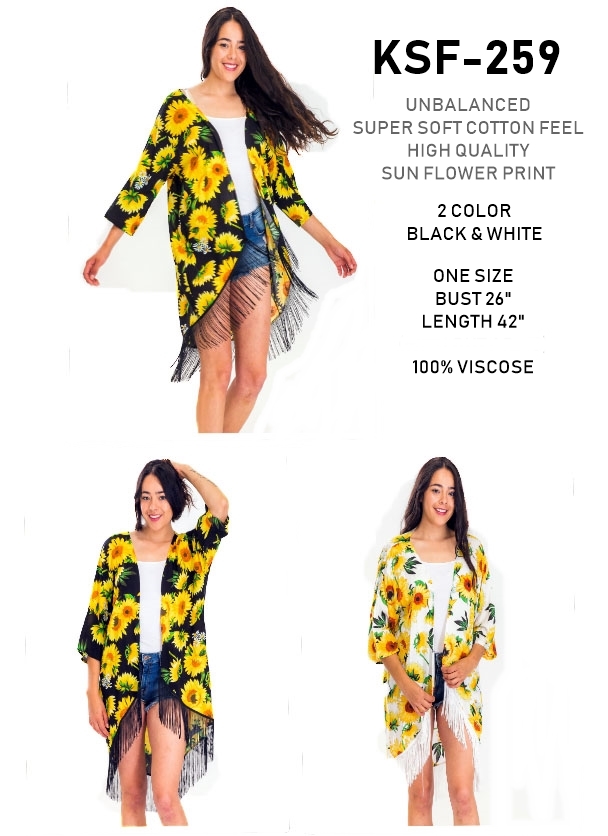Floral Cover Up Kimono (Minimum of 6) 3 COLOR BLACK WHITE ONE SIZE BUST 38" LENGTH 42" 100% POLYESTER