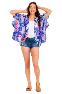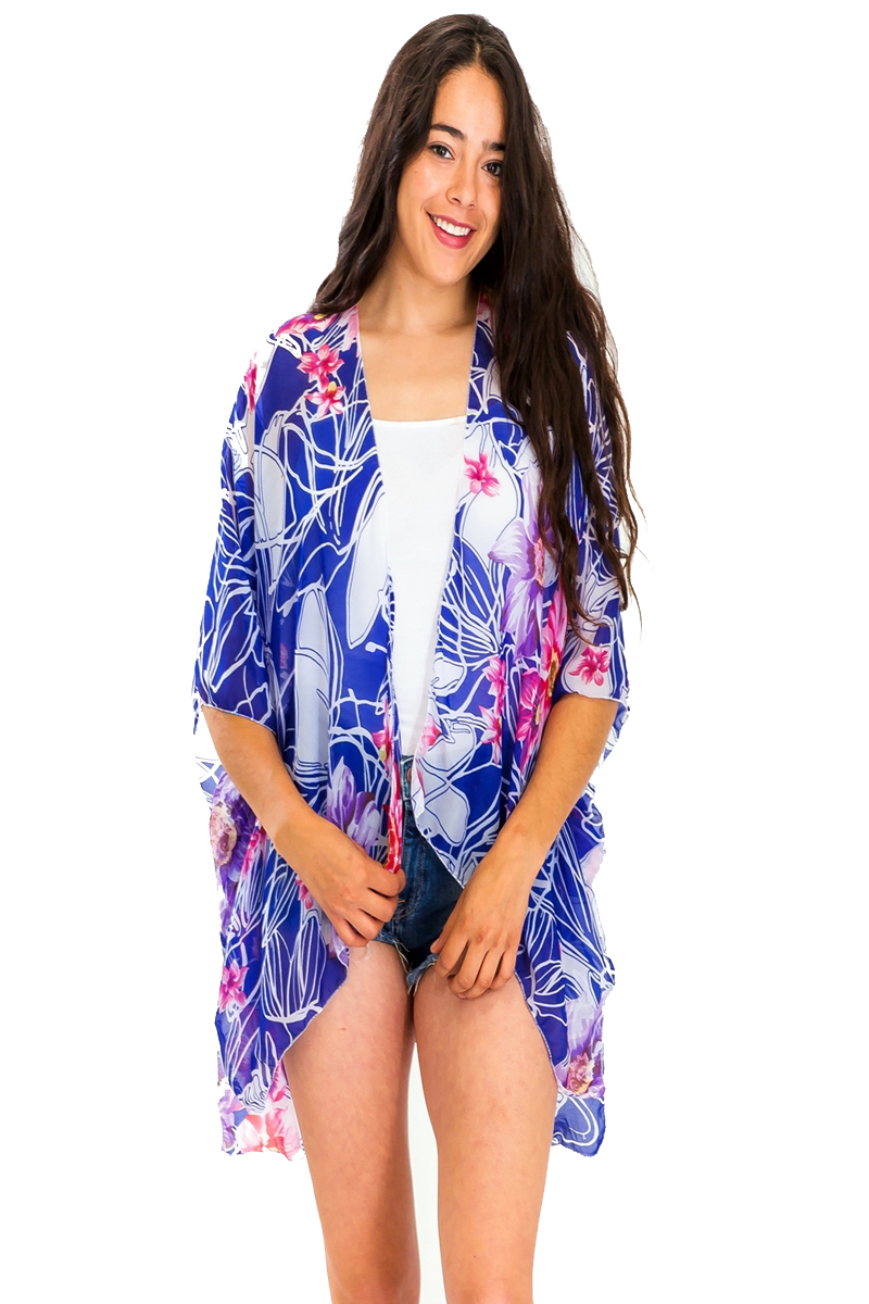 Floral Cover Up Kimono (Minimum of 6) 3 COLOR ROYAL BLUE MAGENTA BLACK ONE SIZE BUST 38" LENGTH 28" 100% POLYESTER