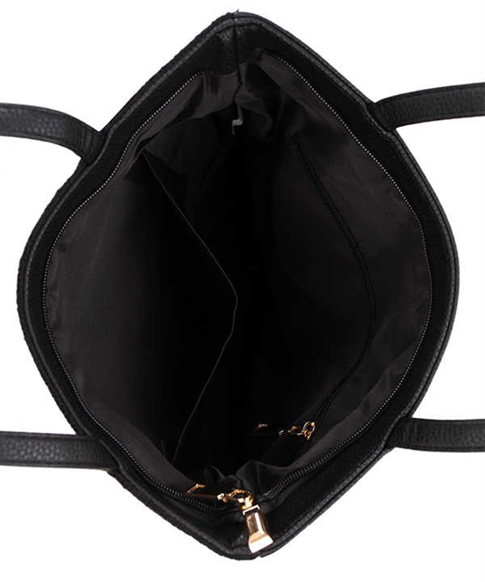 Women Print Sequined Tote Bag A039PP BLACK B