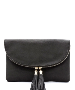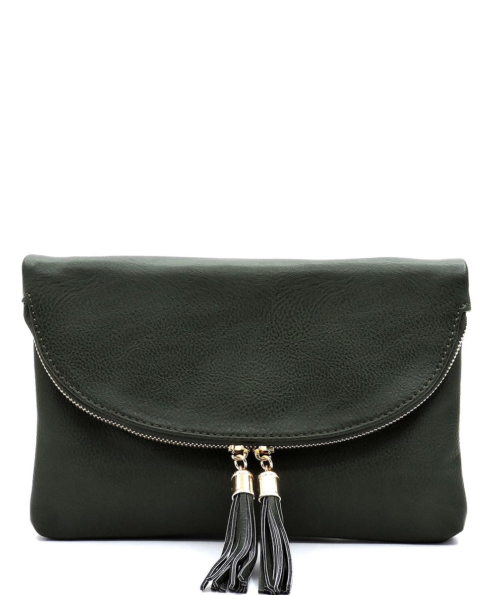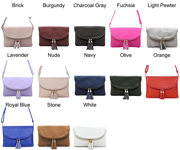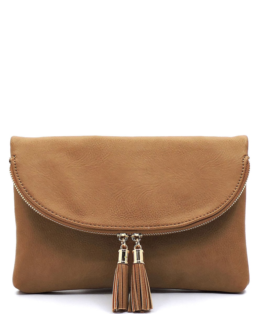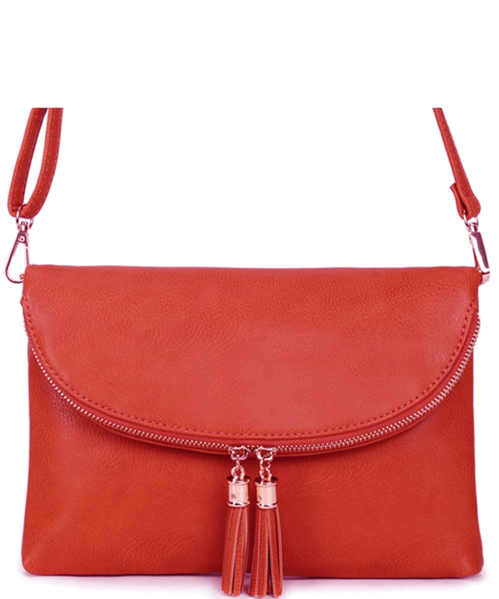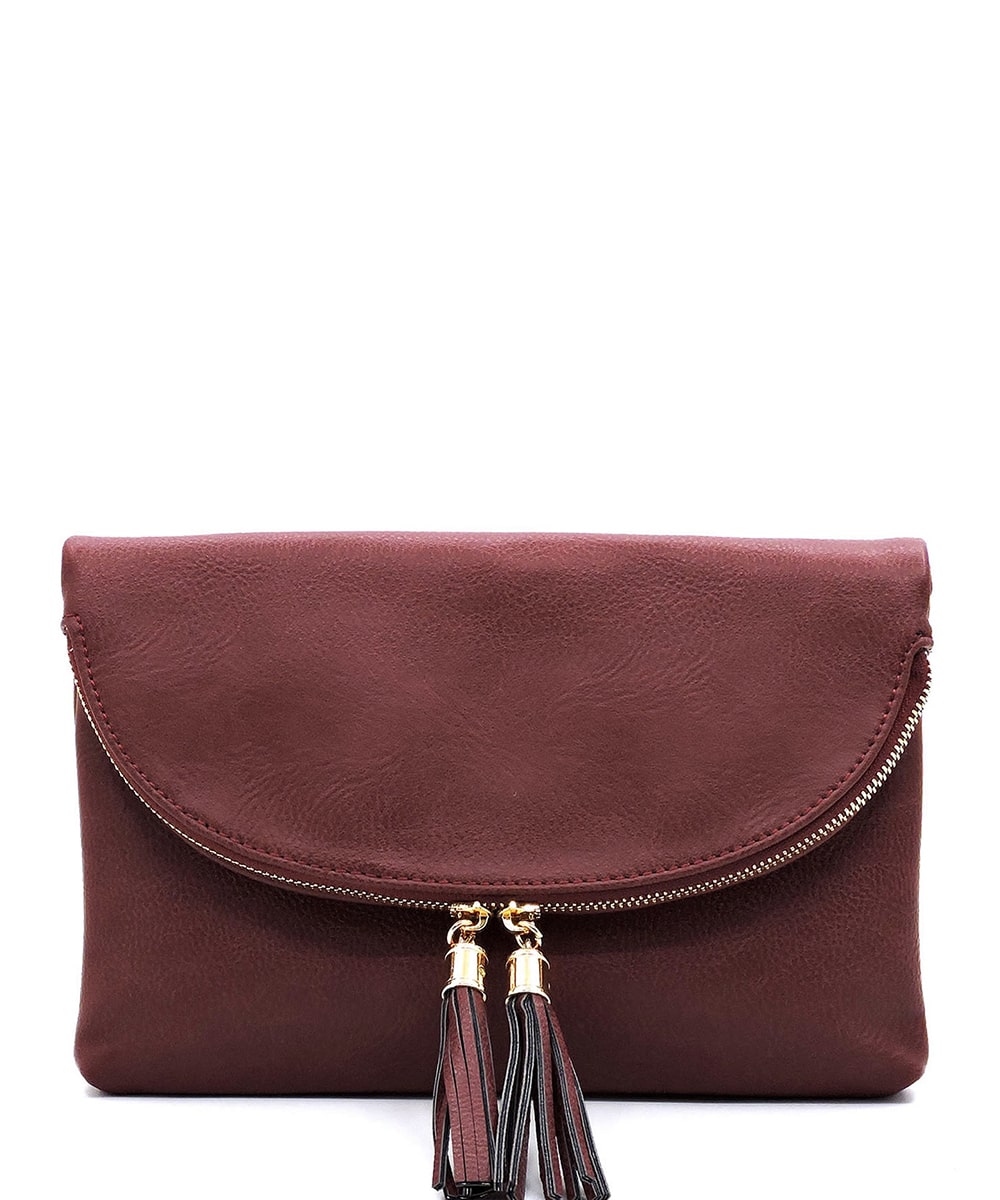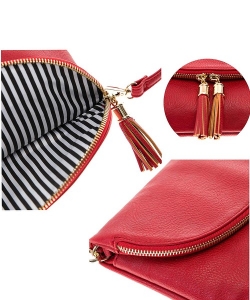 Rich Faux Leather Multi-Compartments Clutch Cross body Bag With Tassels.
