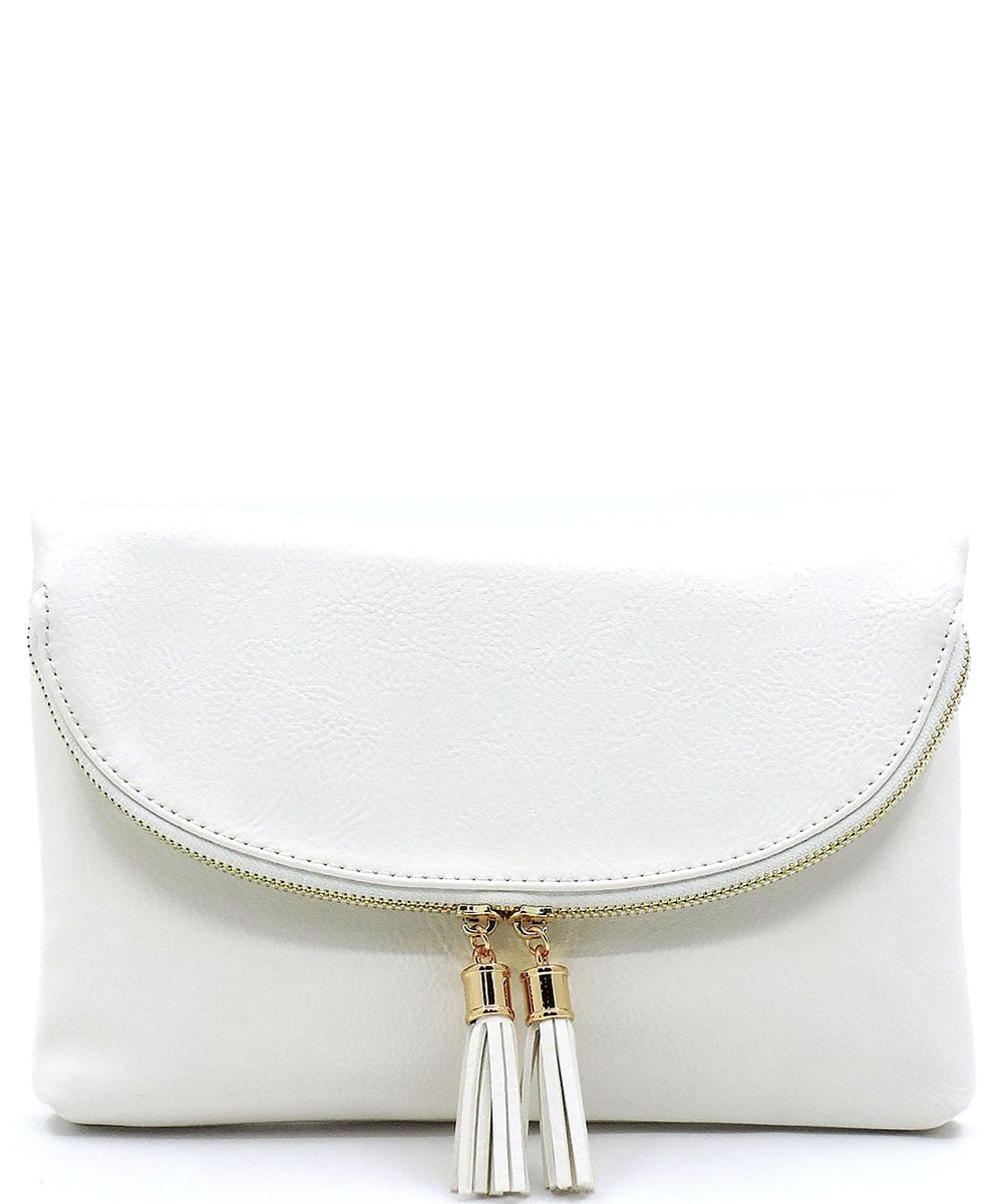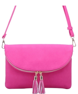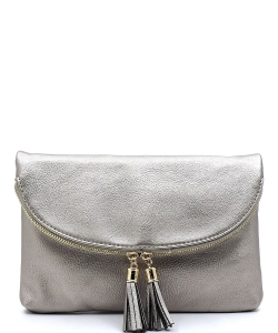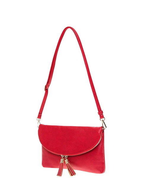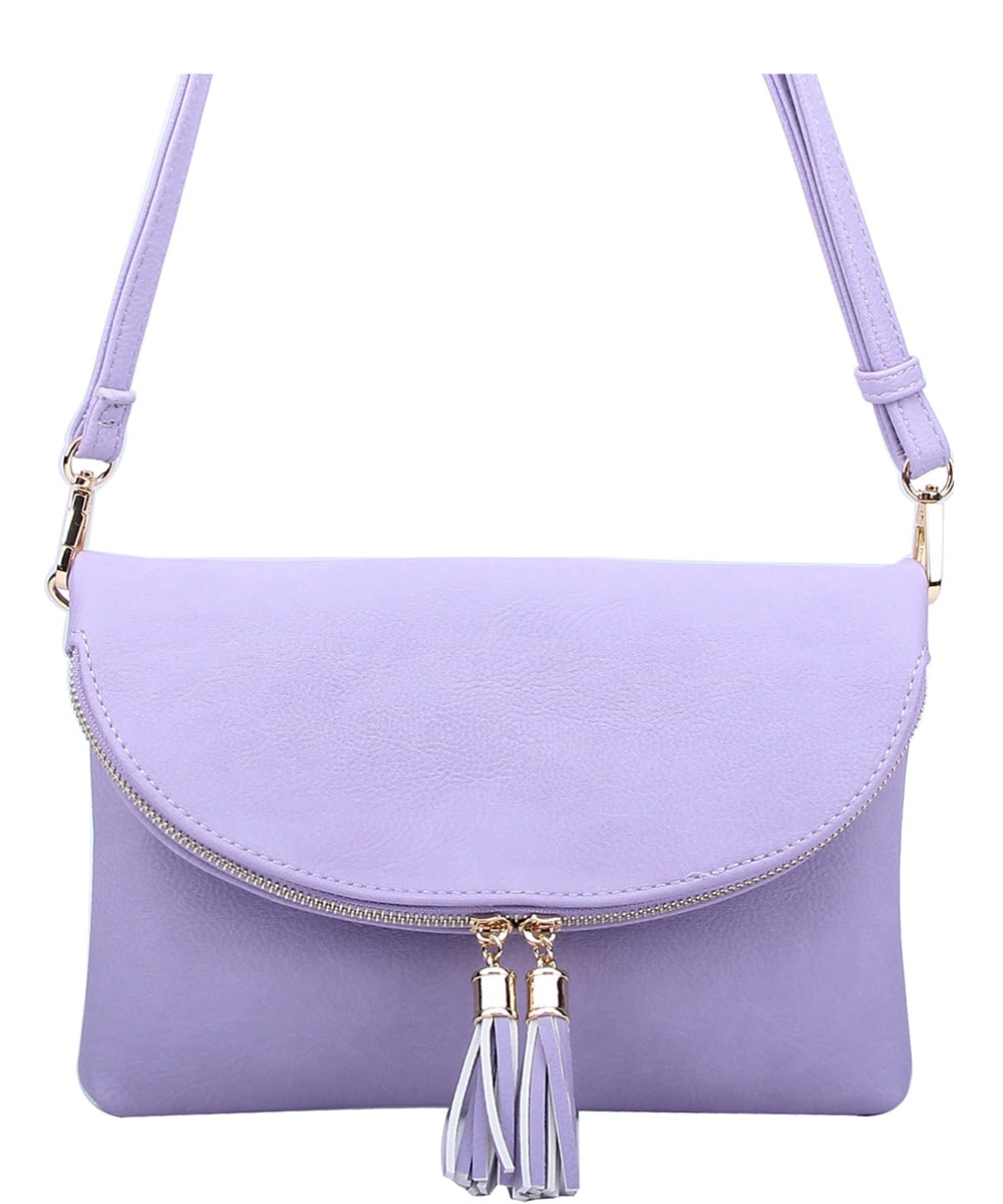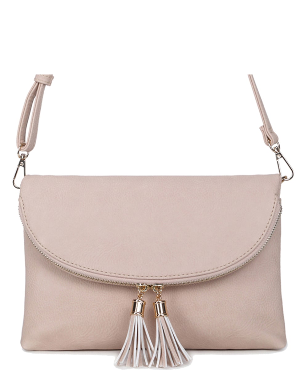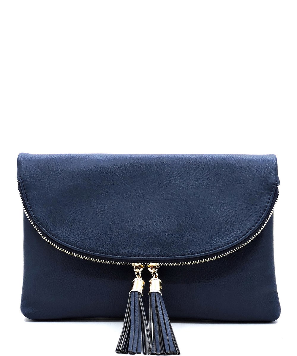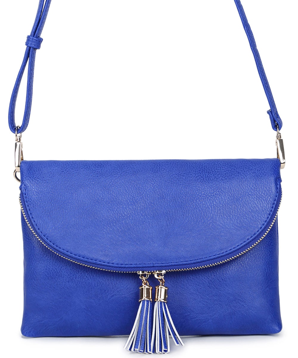 Rich Faux Leather Multi-Compartments Clutch Cross body Bag With Tassels.