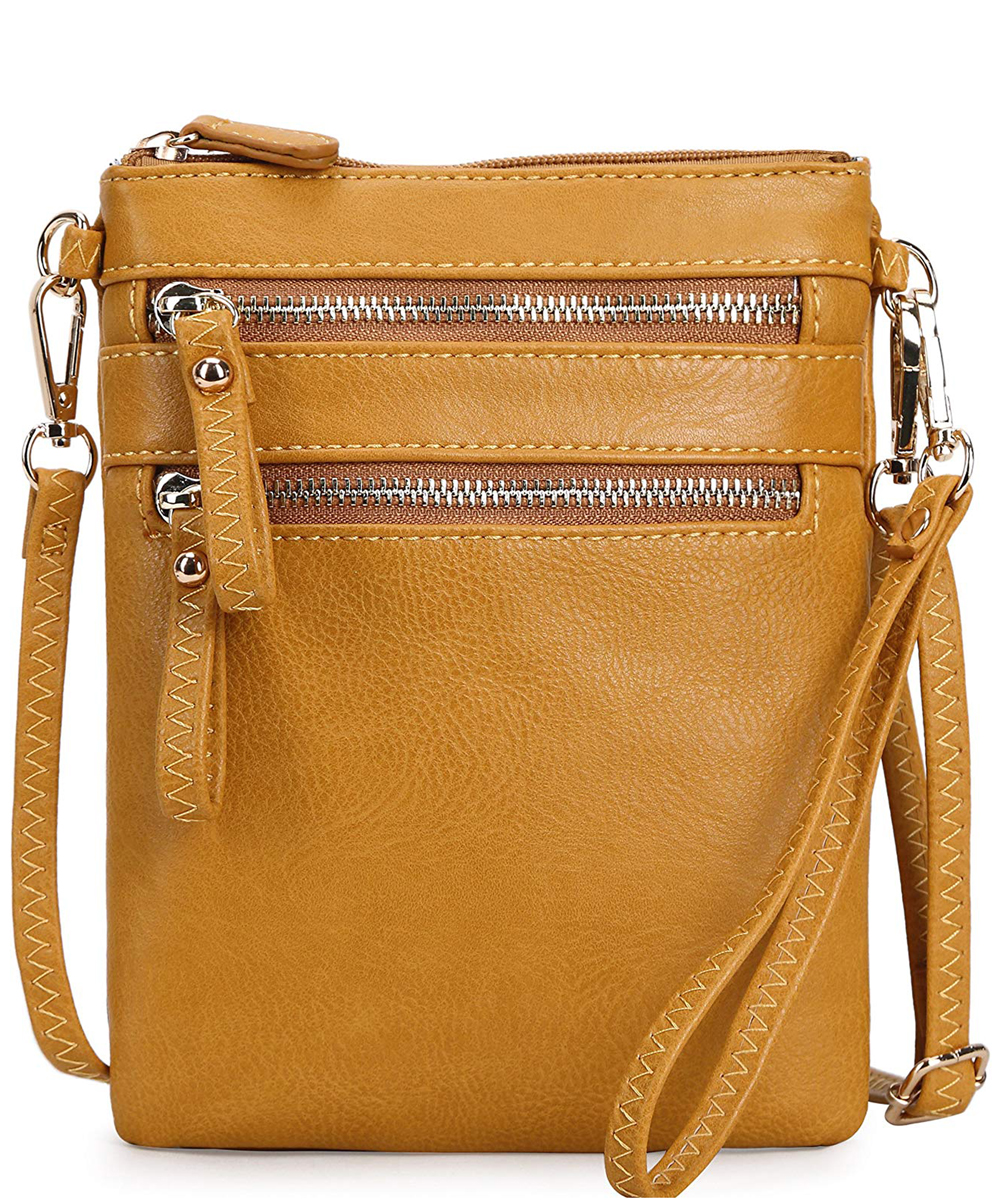 Rich Faux Leather Wristlet and shoulder Handbag with High quality Gold Tone Hardware Product Structure: 1 Top zipper closure, 3 exterior zipper pockets, 1 inner zipper pocket and 1 inner open pocket with detachable Wristlet strap and Shoulder Strap Drop up to 27" Style: This stylish Multi-functional cross body bags is the perfect everyday activity. It can be used as shoulder bag, crossbody bag, phone purse, wallet purse Occasions: It is very elegant and suitable for Dating, shopping, work, party, travel; it's a good gift Approximate dimension: 7"(W), X 8.5"(H) X 1"(D) // Disclaimer: The color you see on your screen might not be an exact color of the product due to monitor settings/pixel definitions/model/brand/etc.
