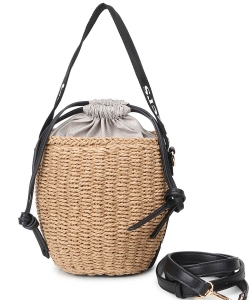 Fashion Woven Flapover Crossbody Bag WU113 TAUPE